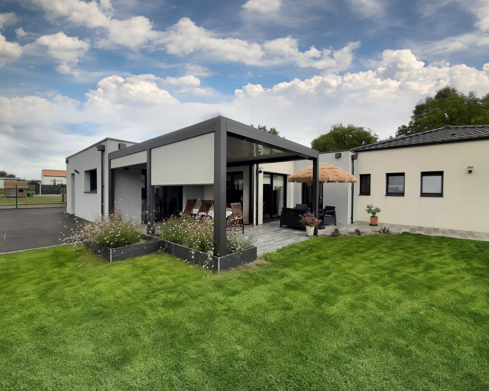 La pergola OPEN esthétique et fonctionnelle, elle s’adapte à toutes les architectures qu’elle soient traditionnelles ou contemporaines.