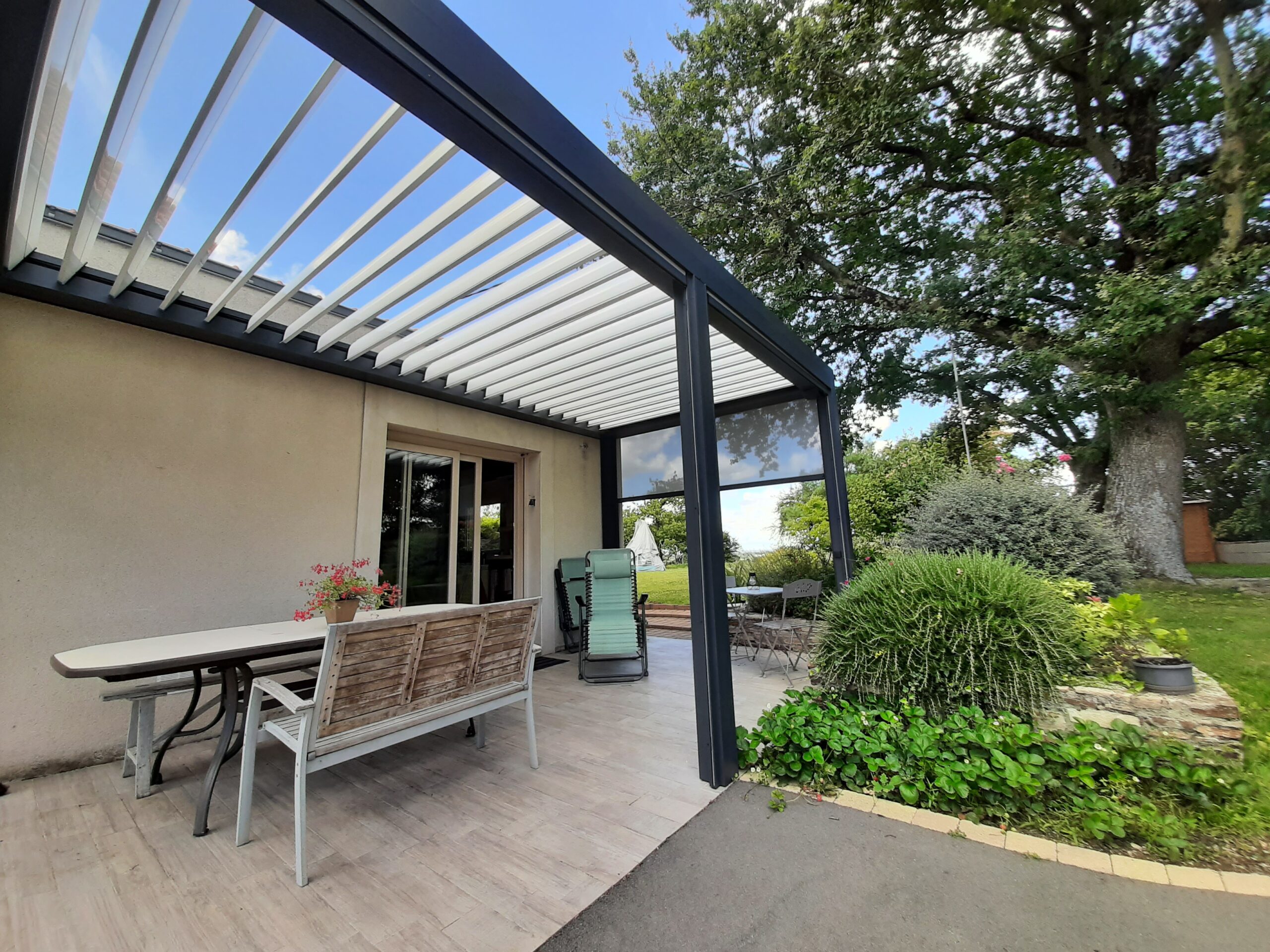 Les pergolas peuvent s’équiper de panneaux modulables pour une pergola adaptée à vos envies.