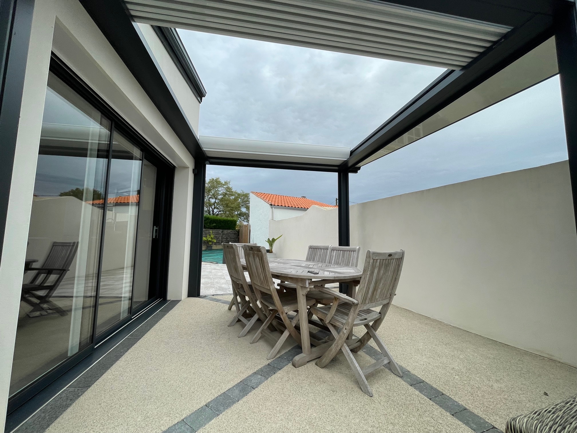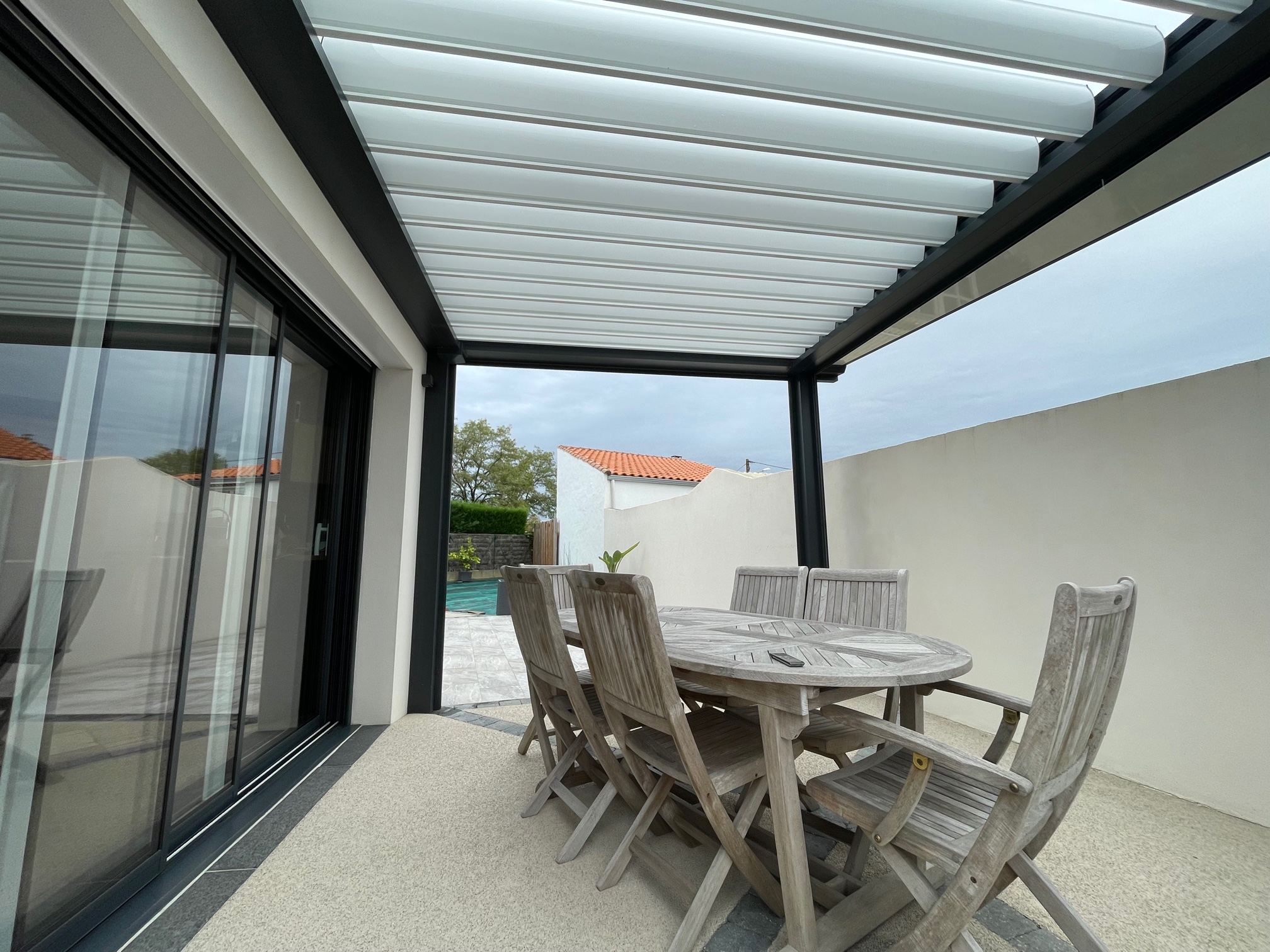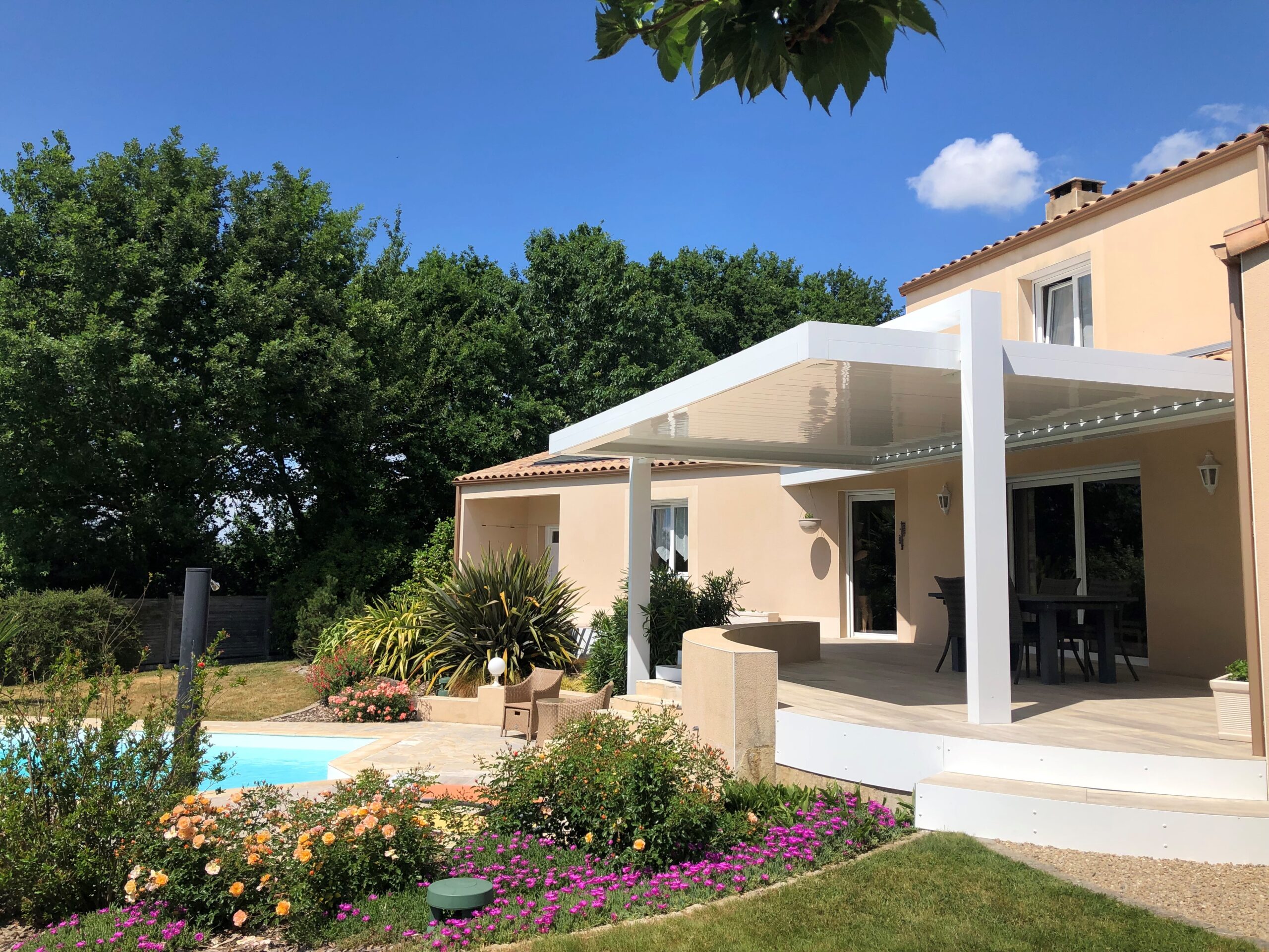 Pergola à toile 100% rétractable pour une ombre maîtrisée.