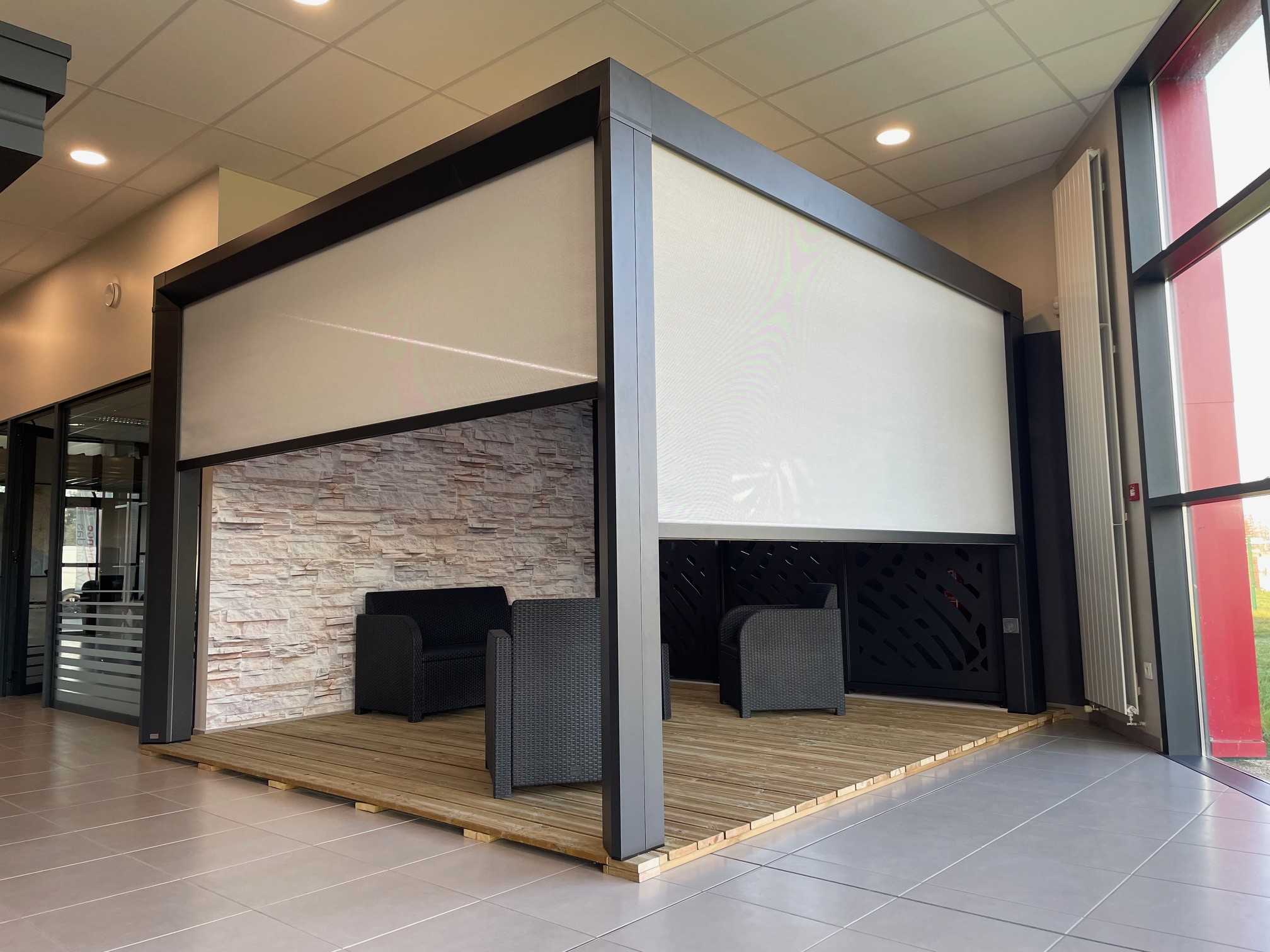 De un à quatre stores latéraux permettent de créer un cocon.
